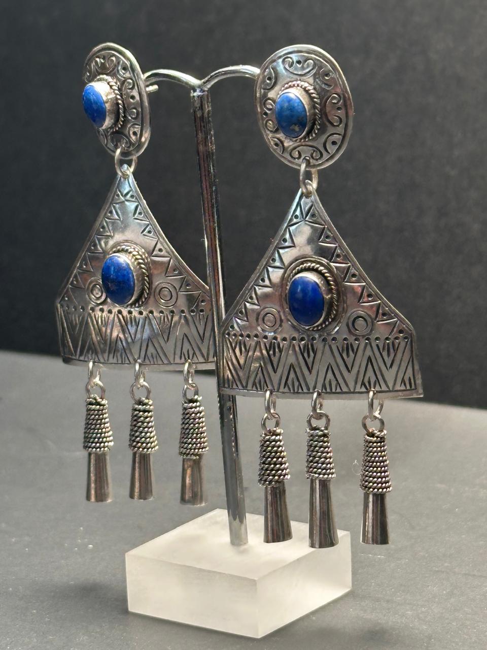 Com tonalidade azul profunda e marcante, os brincos em lápis-lazúli revelam uma estética sofisticada e cheia de identidade. Produzidos em prata 925, são ideais para quem busca uma joia com presença e elegância atemporal.