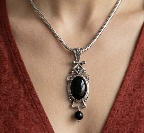 Produzido em prata 925 de alta qualidade, o colar apresenta um pendente com pedra natural ônix, conhecida por sua coloração negra intensa e acabamento polido. A corrente em prata proporciona durabilidade, brilho e conforto no uso diário.